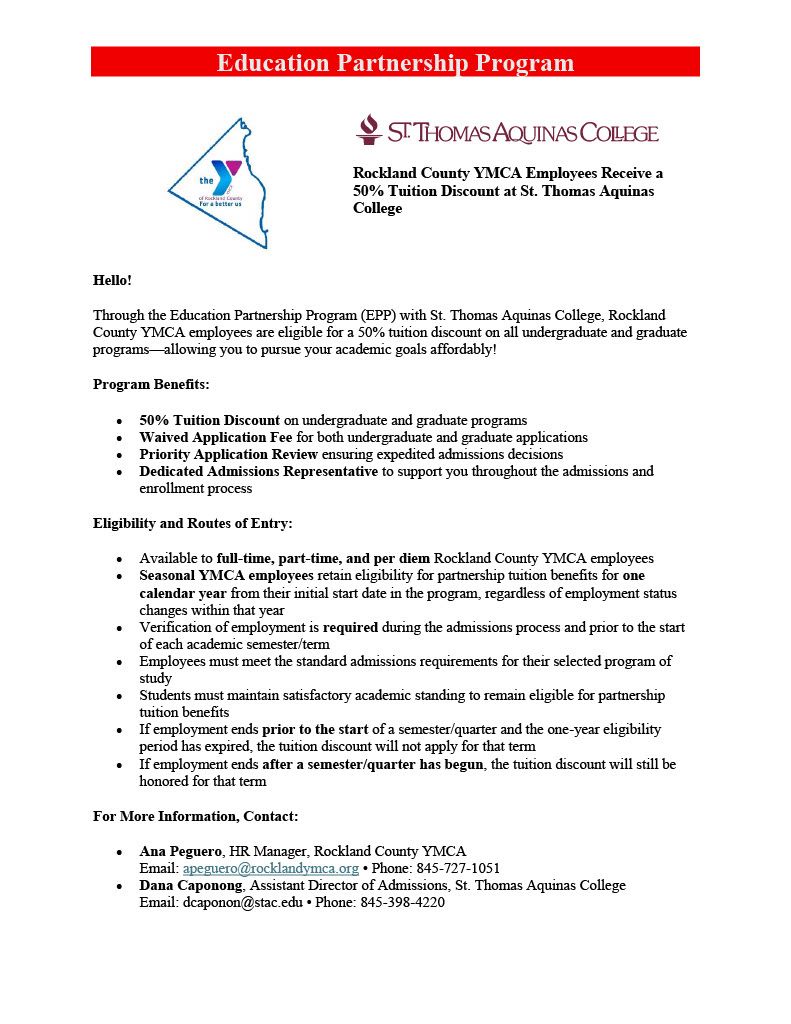Education partnership program between the Rockland County YMCA and St. Thomas Aquinas College