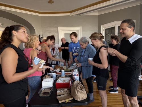 Fresh towels for every rider. Water to keep everyone hydrated. Themed rides on holidays. Fans during the summer heat. And this weekend, homemade lox that he made just to bring people together. Riders added sweet treats and juice, and the YMCA brought the bagels — a simple gesture that helped turn the morning into something memorable.